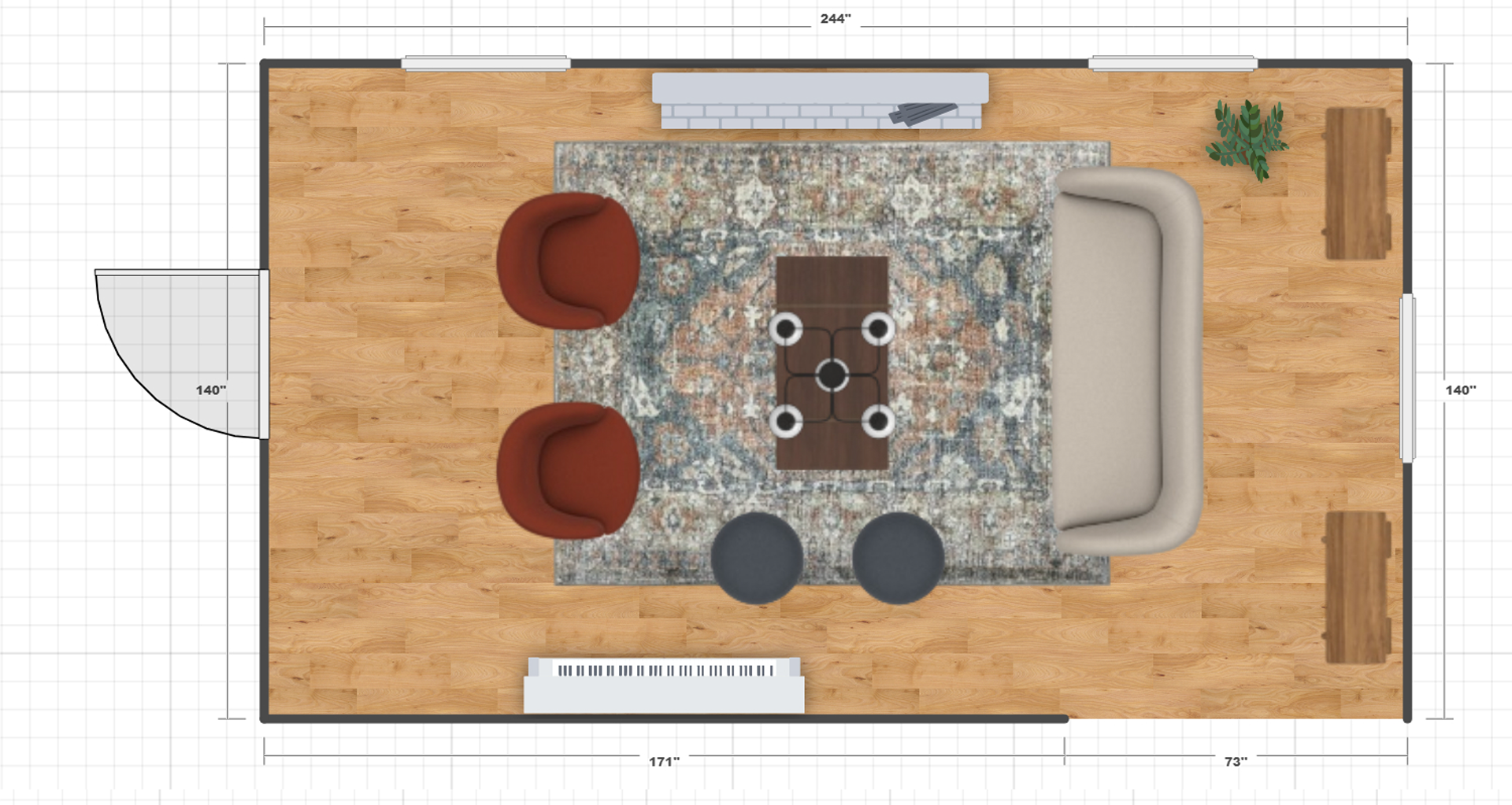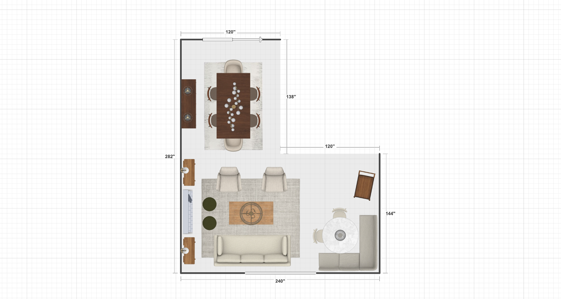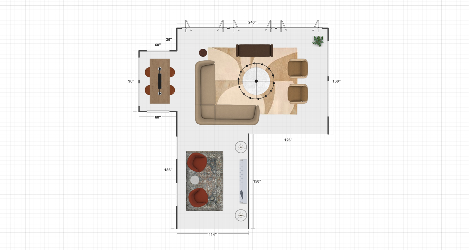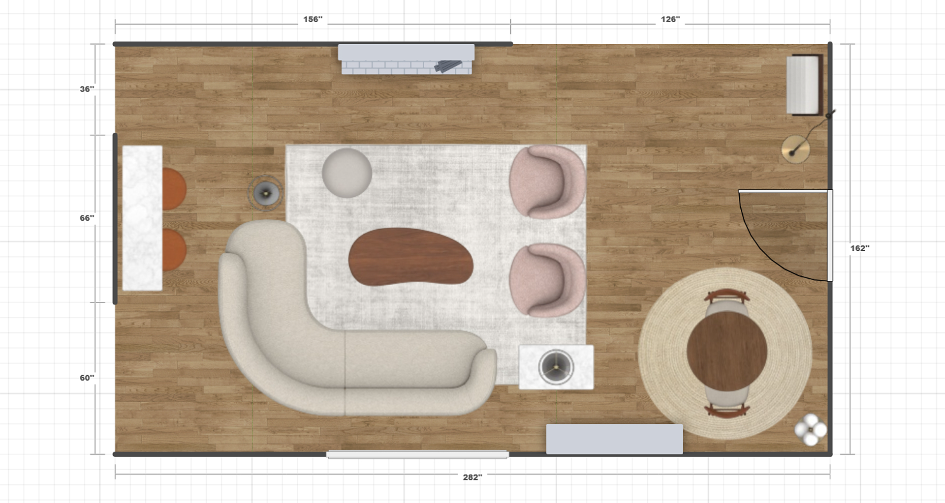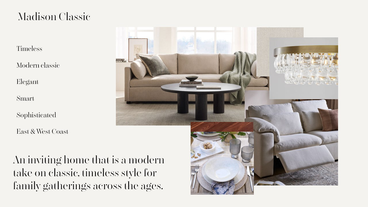 A preview into some of our work during the ideation and planning phase, including mood boards and furnishing layouts.